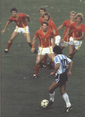 "Maradona, turns like a little eel, he comes away from trouble. Little squat man comes inside Butcher - leaves him for dead - outside Fenwick - leaves him for dead - and puts the ball away. And that is why Maradona's the greatest player in the world."